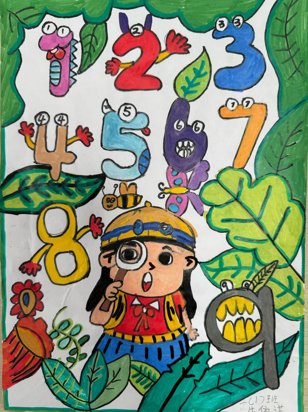 数字数字是灵动的,数字是可爱的,一年级的小朋友们展开丰富的想象,把单调的十个数字“0-9”融入图画中,精心设计了色彩艳丽、内容丰富的数字创意画。数字成为了孩子们的好朋友,孩子们也透过数学发现了世界的另一种美,“数”就在我们身边!