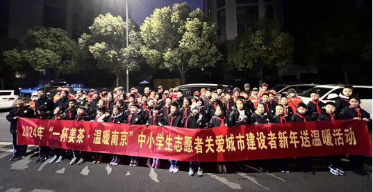 1月1日,由共青团南京市委指导,中国少年先锋队南京市工作委员会、南京市青年志愿者协会主办,各板块团(工)委、少工委承办,南京中研青少年成长服务中心、南京市圆梦青少年发展基金会协办的2024年“一杯姜茶·温暖南京”中小学生志愿者致敬城市建设者新年送温暖活动在南京举办。我校50名少先队员参加了此次活动。