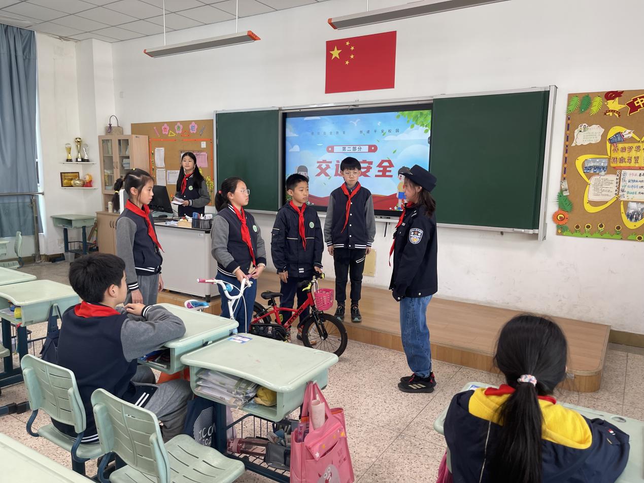 五(7)班的同学们带来了精彩的交通安全情景剧,提示同学们未满12岁的儿童不能独自骑自行车上路,在路上行走时要走人行道,更不能闯红灯。