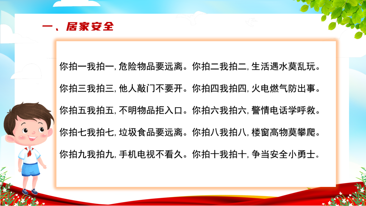 一段朗朗上口的拍手歌,让孩子们在动感的旋律中将安全知识记在心中。