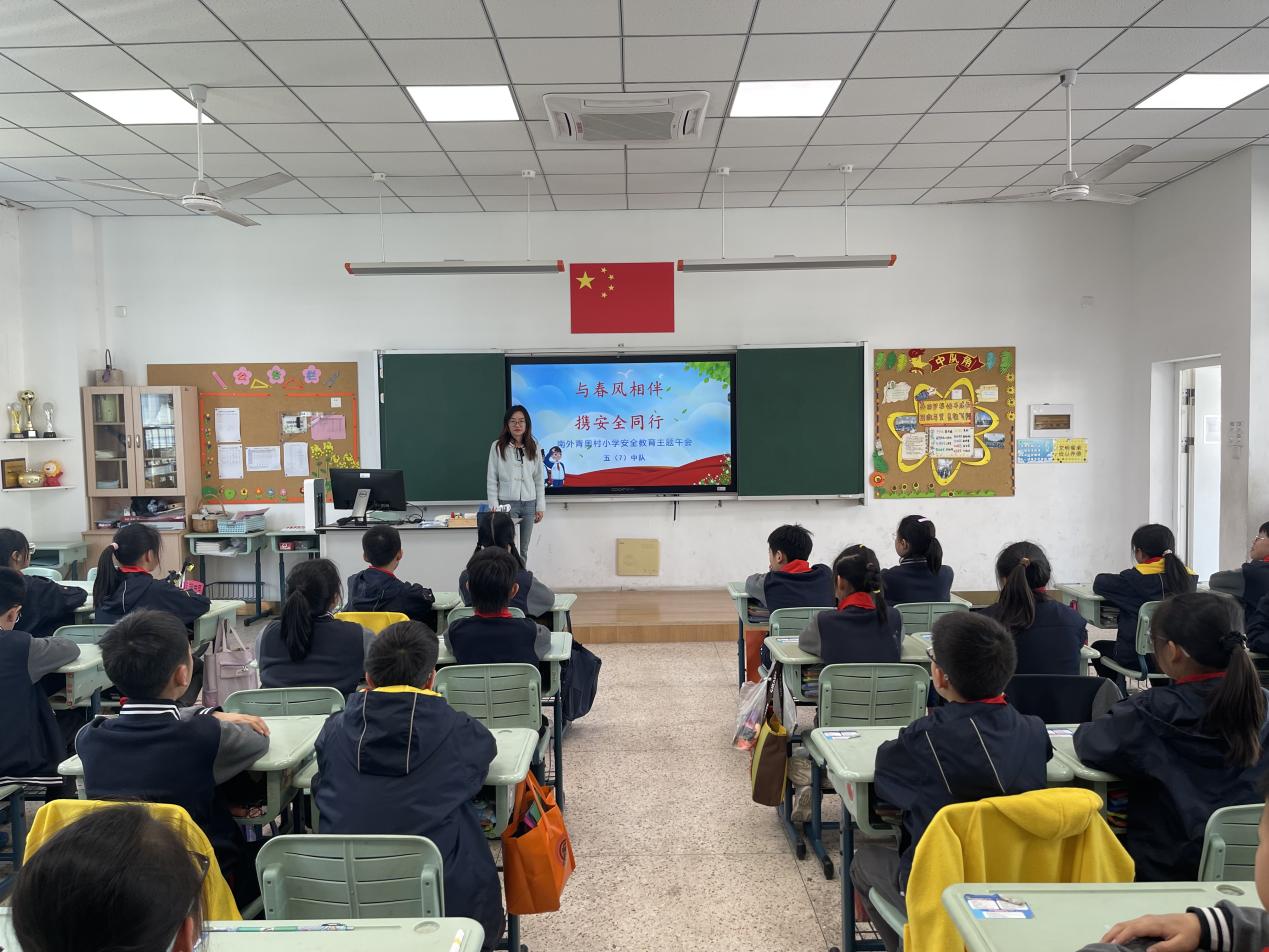 为了增强小学生的安全意识,提高自我保护能力,3月29日,五(7)班开展了以“与春风相伴 携安全同行”为主题的午会活动,全体班主任到场观摩。