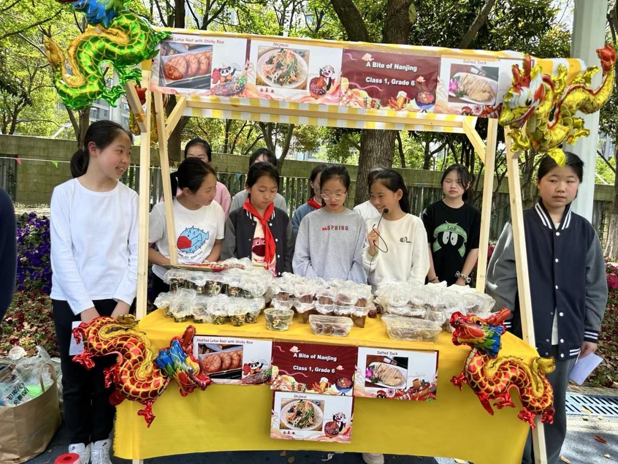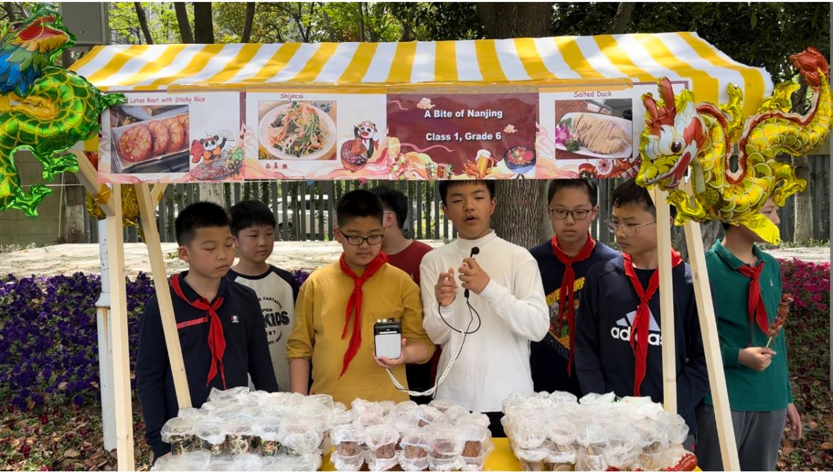 “Come and have a look at our honey and sugar lotus root!”听!五六年级的同学们以班级为单位,对北京、哈尔滨、南京、广州、长沙、重庆、西安、武汉八大城市的美食进行深入探索与交流!各班同学在各自的摊位前各显神通,他们从美食的味道、特色、分享制作方法、历史、价值等多个角度进行推介:“It's made of sticky rice flour and sweet red bean paste. Inside, it's filled with a smooth and sweet red bean paste that gives it a rich and delicious flavor.”五年同学正在一边展示一边介绍路打滚的口感、味道和里面的馅子,南方的孩子对于这一北京美食也有了一定的了解。六年级的摊位前,正在介绍“To make the Nanjing Salted Duck, we should first clean it thoroughly in a mixture of salt, ginger, garlic, and other spices. Then duck is steamed for...”。这位同学分享了一段盐水鸭的制作过程,真是让摊位前的围观者们赞不绝口。高年级的同学们自主搜索相关美食资料,用更丰富的语言,从更全面的视角介绍各地特色美食。“Would you please give me some ...”孩子们使用着礼貌用语穿梭于各个摊位之间,倾听介绍,互动交流,感受着中华美食的地域特色,领悟中华美食文化背后的深意。家长志愿者们参与其中,他们纷纷表示:“2024外语届节活动格外精彩,相信会给即将毕业的他们心中留下深深烙印”。