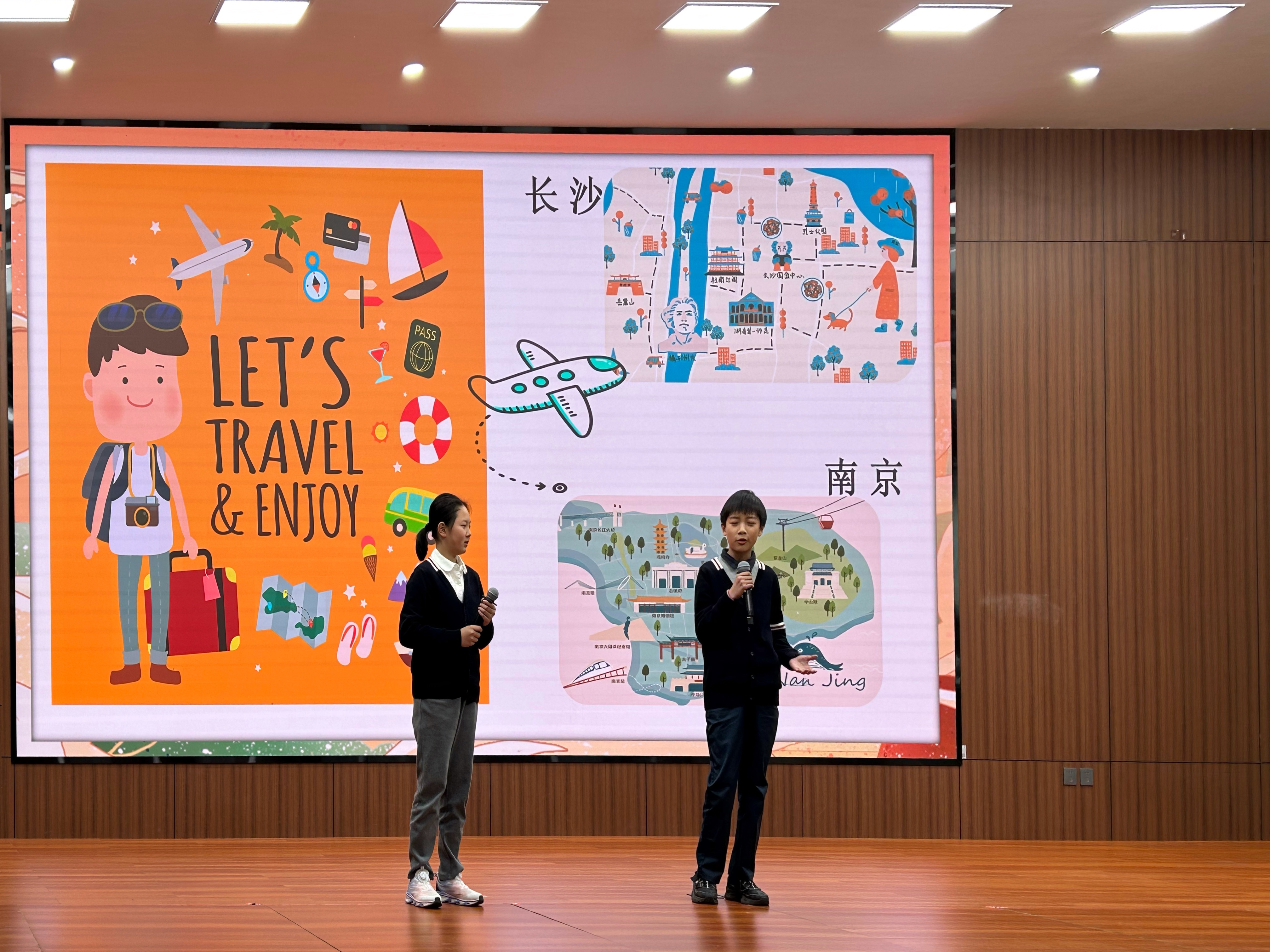 开幕式活动精彩纷呈,在王宸和陆彦黔两位老师携手一年级蒋邢奕、二年级吴思涵、三年级周芊朵、四年级陈梓宸和五年级刘启宸、石轩源六位同学的共同主持下,各年段同学们用自己独特的方式展现了本次外语节的主题和活动内容。