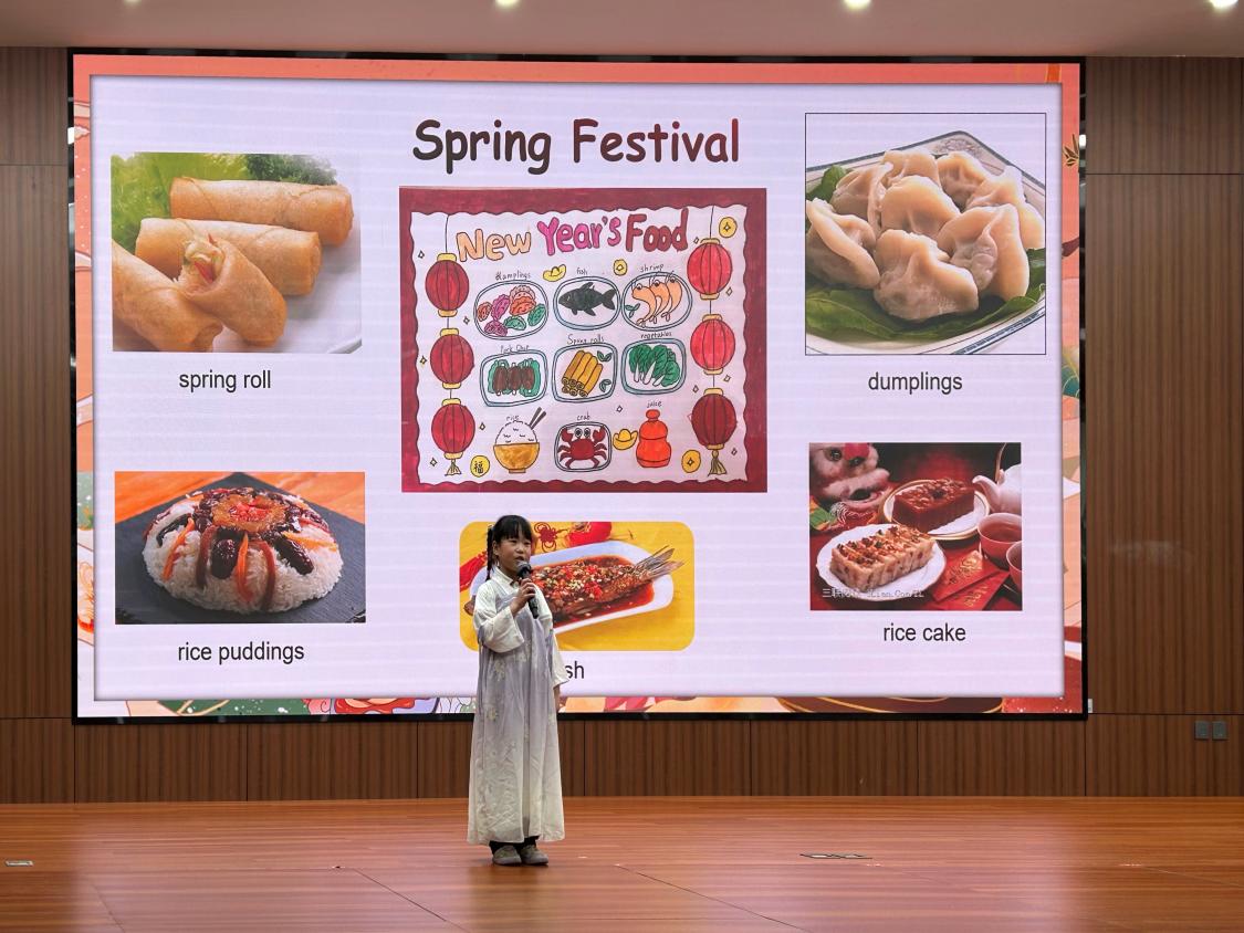 二年级王瑾瑜、竺子越两位同学分别为大家展示了春节和端午节的传统美食,他们用流利的语言、可爱的图画秀出了他们喜欢的节日美食。