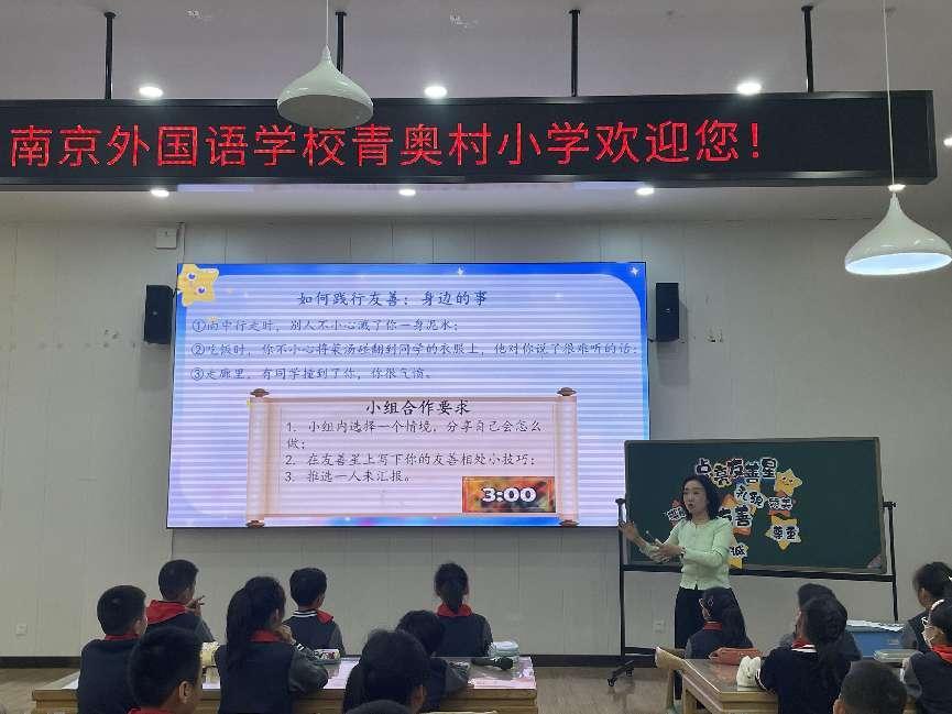 来自南师附中黄山路小学的张达女老师带来的《点亮友善心》一课,通过趣味的情景模拟,教会孩子们把友善放在心里,落在行动上,与他人多一些沟通,少一些矛盾,做一个友善待人的好孩子。