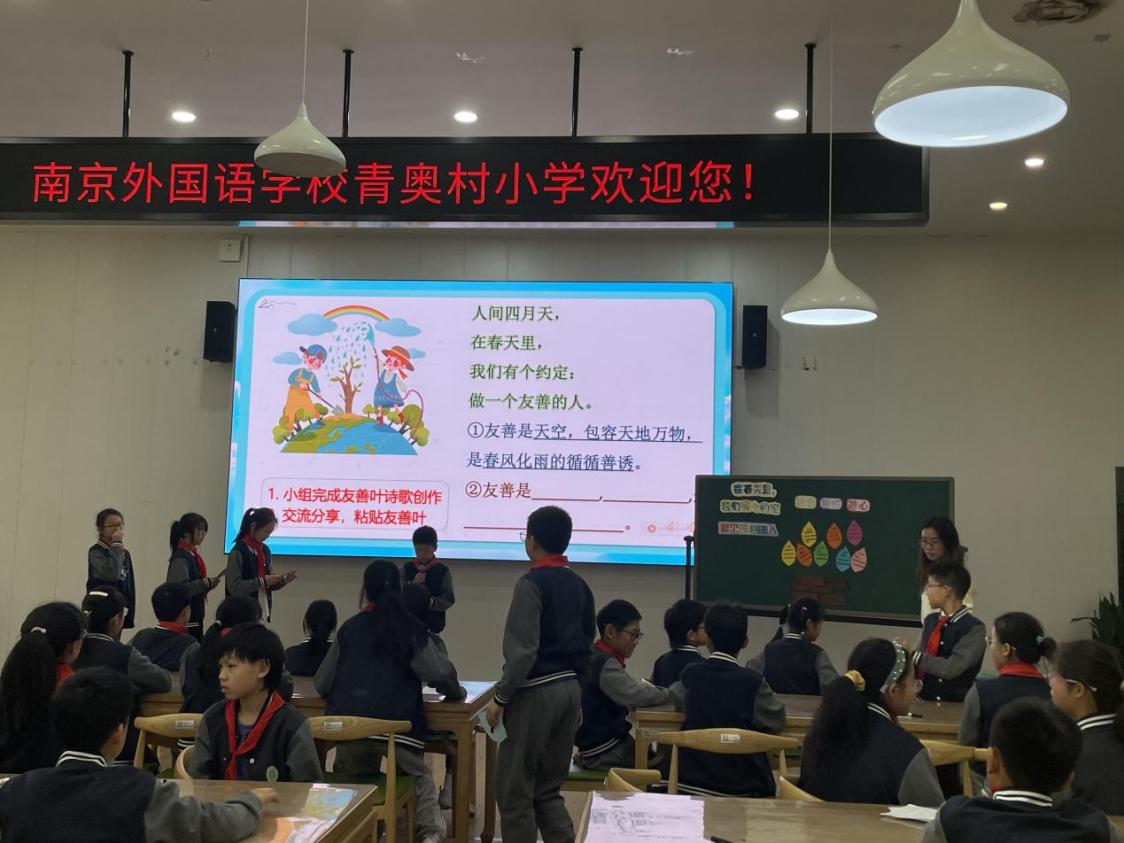 我校赖慧老师呈现的《在春天里,有个约定》一课,引导孩子们在游戏中感受友善,分享关于友善的故事,在“树叶”上写下友善小诗,让孩子们懂得通过善心、善言、善行,让友善落地生根。