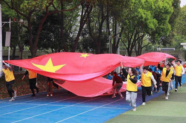 激昂的运动员进行曲响起,运动会正式拉开帷幕。庄严的国旗方阵徐徐走来,国旗手气宇轩昂,精神抖擞,象征着学校开拓创新、勇往直前的精神风貌,也正预示着学校将一步一个台阶,力争走向更加辉煌的明天!
