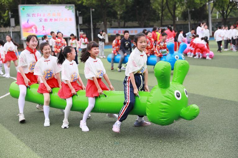 爬爬乐、毛毛虫、闪电云梯、迎面接力项目异彩纷呈。他们挥洒着汗水,为挑战自我而奋斗,为集体荣誉而拼搏,彰显了青春风采。践行着“我运动、我健康;我快乐,我成长”的体育精神。