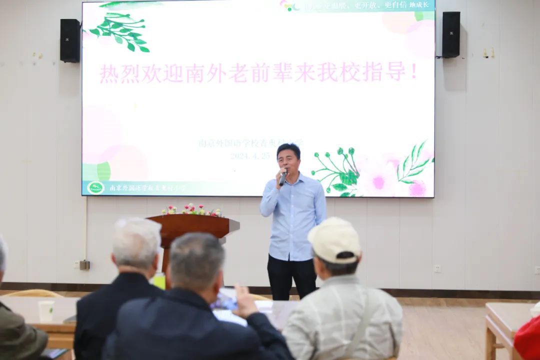 季春渐暄,鸟啼花笑,4月25日,在热切期盼中,我校迎来了近八十位精神矍铄、神采奕奕的南外退休老教师。作为曾在南京外国语学校奋斗过的前辈们,他们早已在教书育人、科学研究等领域沉淀了无比珍贵的经验。尽管已从挚爱的工作岗位上荣退,但他们对南外教育集团的殷切关心和赤诚热爱,丝毫未有衰减。上午十点,马雪生校长携学校领导班子在校门口迎接退休教师们的到来,久违的面孔,熟悉的声音,再次相聚,如沐春风,倍感温馨。