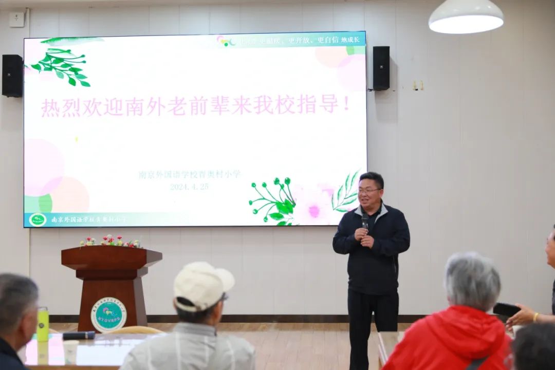 马校长对老教师们的到来表示诚挚的欢迎和感谢,并向退休教师们详细介绍了我校办学故事和发展现状。作为南外教育集团的成员校,我校将秉承老一辈的风骨和精神,不忘初心,为本部提供源源不断的优质生源。他还希望各位退休教师能常来看看,积极建言献策,共同推动学校发展再上新台阶。
