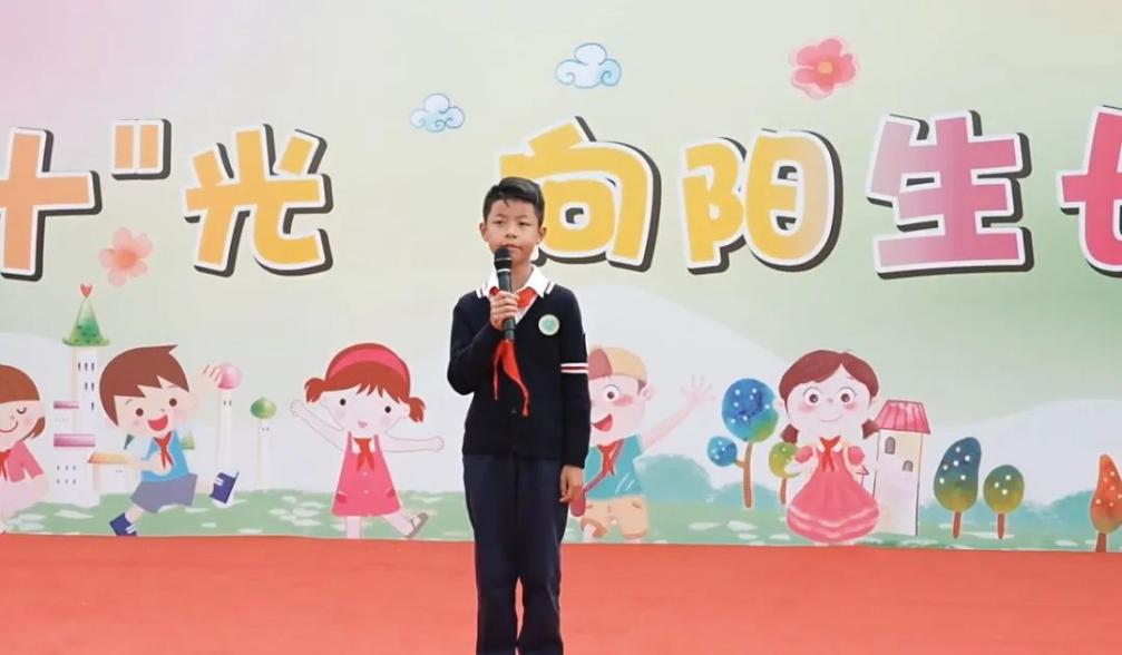 三(1)中队龚敬仓作为学生代表发言。他代表全体同学对父母表达了感恩之情,并表示未来将继续在美丽的青奥园里,收获更加温暖的自己、更加开放的视野和胸怀、更加自信地成长。