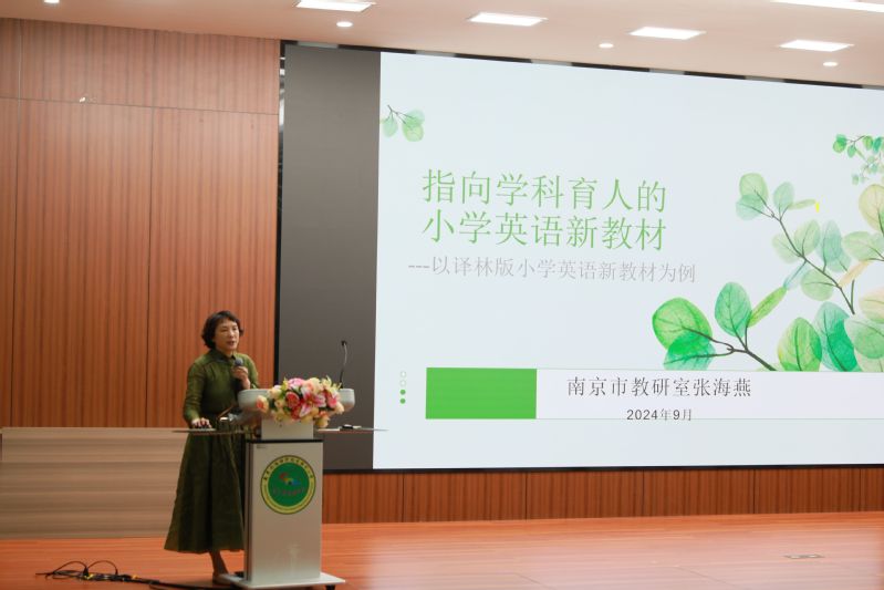 南京市小学英语教研员张海燕老师对王老师的课进行了简要点评,并以“指向学科育人的小学英语新教材”为题,围绕教材编写理念、教材体例介绍、育人价值体现和单元教学建议四个维度,带来了一场精彩讲座。首先张老师分享了新教材的一些变化,她着重强调了新教材的思想性原则,即教材首先是学科育人的媒介。张老师也指出新教材的板块设计简明、功能清楚。她建议老师们备课时以终为始,明确学生的最终产出,进行单元整体设计,通过不同板块,并利用补充资源,从不同角度回应大问题(Big Question),引导学生逐步生成、构建、深化对大问题的认知。