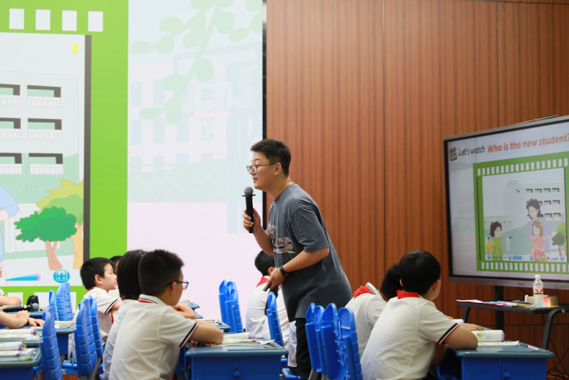 首先,我校王宸带来了一节题为“五上译林Unit 2 A new student (Story Time)”展示课。王老师以班级新同学为引子,让学生头脑风暴欢迎新同学的不同方式。在解读课文时,王老师循循善诱,引导学生利用图文信息找出杨玲如何欢迎新同学Nancy并介绍了学校的一些场所。接着,让学生通过3-4人小组合作,绘制教学楼平面图,讨论不同教室所在楼层,设计并汇报合理的参观路线。在学习理解、应用实践活动结束后,师生共同总结了如何欢迎并带领新同学参观校园,并评价了杨玲是一个怎样的向导。从生活中来,到生活中去。在迁移创新环节,学生6人一组,通过对话的形式,展示了如何介绍青奥园里的各个场所。学生们热情参与,表达自然流畅,礼貌大方。整节课以终为始,逻辑清晰,体现了单元整体教学理念,用一个大问题“如何欢迎新同学并带领他们参观校园”串起环环相扣、层层递进的问题链,让学生用英语做事,解决现实生活中的问题。这也是译林新教材的设计理念和实践方向。
