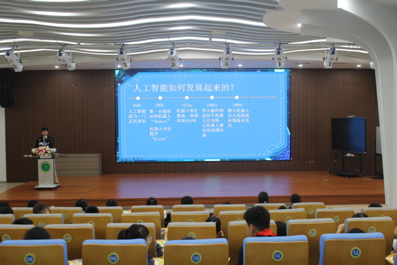 课程的第二部分,老师以艾伦·图灵和图灵测试为切入点,带领学生们走进了人工智能的历史长河。艾伦·麦席森·图灵被誉为计算机科学之父和人工智能之父,他提出的图灵测试是判断一个机器是否具备智能的重要标准。老师通过生动的案例和有趣的互动,让学生们理解了图灵测试的原理和意义。在互动环节,老师邀请了一部分同学进行发言互动,让他们亲自体验了与机器对话的乐趣和挑战,感受到了人工智能的神奇魅力。