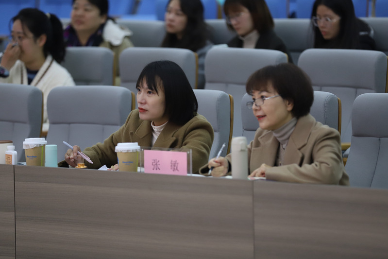 最后,南京市英语学科带头人张敏老师对活动进行点评总结。张老师对本次课堂观摩和教师研讨活动给予了高度评价,四位老师能够深入解读新教材,根据学生的实际学情设计多样的、贴合生活的学习活动,让学生沉浸在课堂中并有大量的语言输出。随后,张老师结合新教材的编写逻辑与教学目标,对四节课进行了精准点拨。她强调,单元主题图内容丰富,可在本单元教学中根据实际情况进行复现和灵活使用,课堂的评价语言可以更多样并抓准评价时机。学生需要回归文本。张老师也举例说明如何在新教材课堂中体现新课标理念,为老师们在单元整体教学的实施上提供了更具操作性的建议。