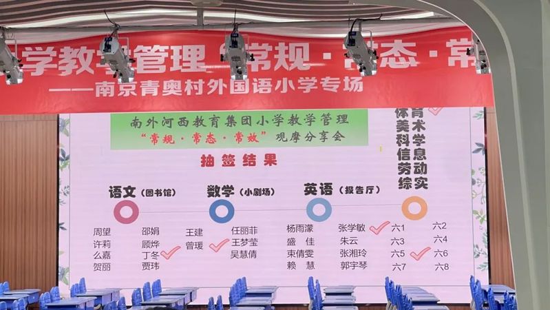 紧接着现场进行随机抽签,产生听课教师、学科、班级,并现场公布听课班级安排,这种覆盖面、真实性、情境性,让参会嘉宾叹服。大家随后移步至各学科分会场进行观摩。