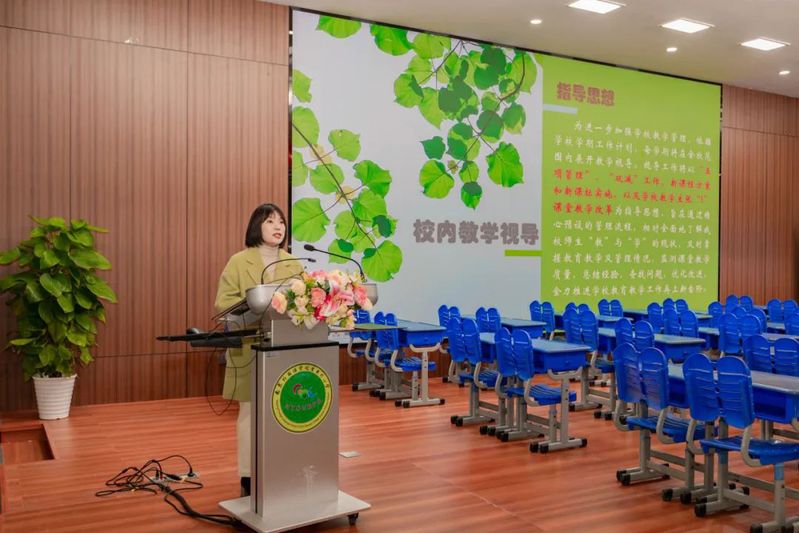 南京青奥村外国语小学副校长周培蓓就学校教学视导工作作简要介绍。她围绕校内教学视导五大核心内容展开论述,向大家展示了教学视导的工作成效。