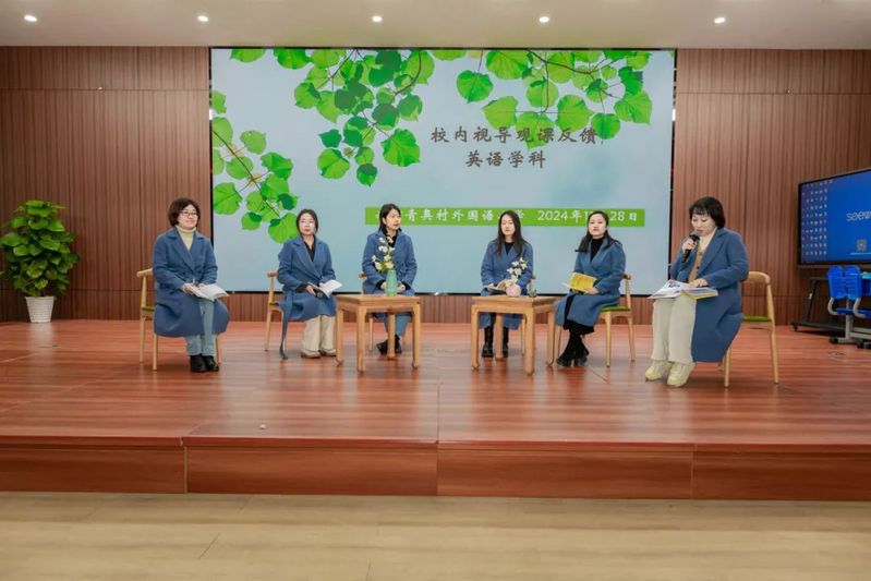 英语学科就今天的校内教学视导情况进行现场反馈,学科教师们从大问题驱动英语教学、差异化教学、教学评一体化等方面进行分享,全方位展示英语教学理念。