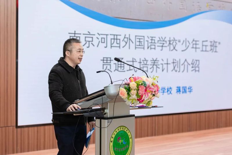 南京河西外国语学校副校长蒋国华简要介绍了《小学义务阶段数学拔尖人才早期贯通式培养计划》。