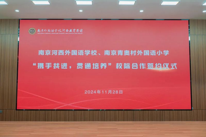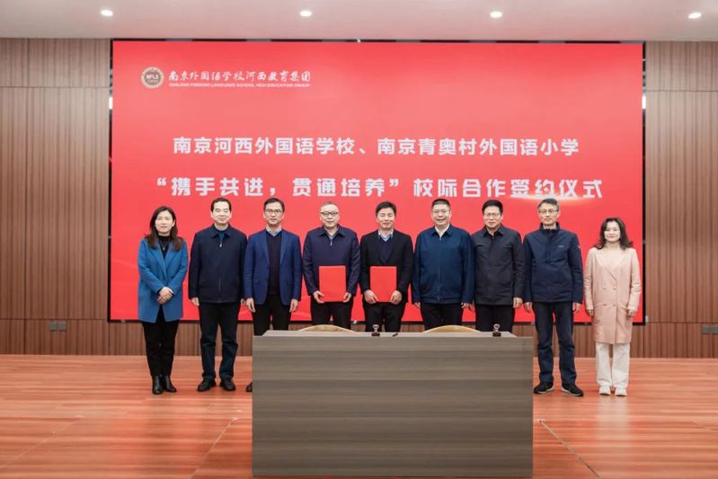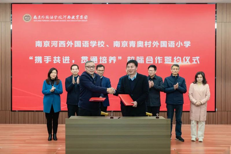 观摩分享会结束后,现场还举行了“携手共进,贯通培养”南京河西外国语学校与南京青奥村外国语小学校际合作签约仪式。