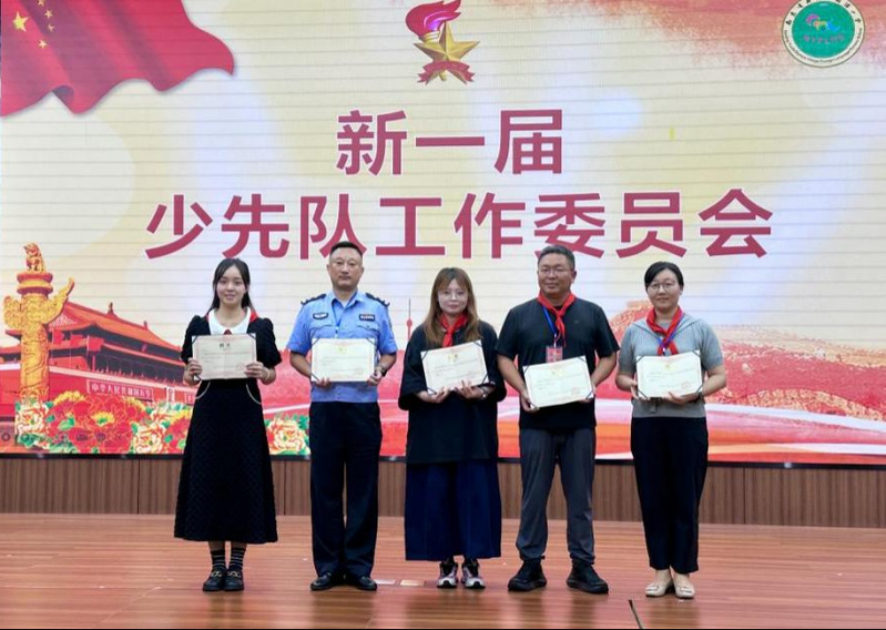 会上,团支部书记张政为本次活动致贺词,表达了对少先队工作的支持与期望;大队辅导员程欣然老师进行了2024 - 2025大队部年度工作汇报,全面总结了过去一年的工作成果,并对新一年的工作进行了规划;朱道亮书记认真回复了红领巾小心愿,让队员们感受到了组织的关怀与重视;同时,朱书记、李慧副校长、贾玮副主任为新一届大队委员颁发聘书,激励他们勇担责任,为少先队事业贡献力量。