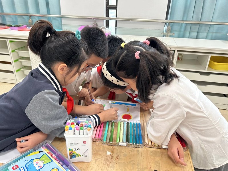 三四年级的课堂与课间,成了科学创意的“孵化场”。无论是科学教室的实验讨论,还是美术教室的手工创作,都能看到同学们忙碌的身影。有的分享有趣的科学小知识、难忘的实验经历,有的推荐爱不释手的科普读物,还有的以小组为单位,共同完成了色彩鲜艳、内容丰富的科技小报。一双双巧手、一张张笑脸,都是对科学探索最生动的诠释。