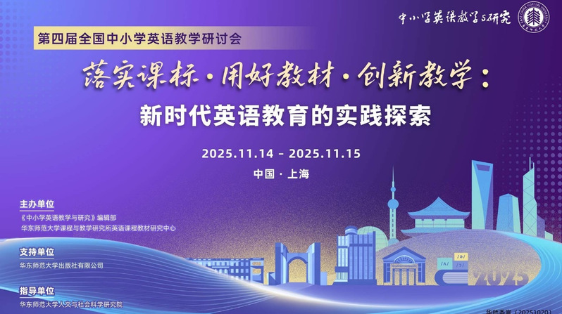 近日,备受全国基础教育英语领域关注的第四届全国中小学英语教学研讨会在上海隆重召开。本次研讨会由《中小学英语教学与研究》编辑部主办,以“落实课标·用好教材·创新教学:新时代英语教育的实践探索”为主题,聚焦新课程标准背景下的课堂教学创新、教材实践转化、信息技术融合与教师成长机制建设等核心议题,通过专家报告、分论坛研讨、课例展示等多种形式,搭建了专家引领、教学观摩、经验交流与成果展示的高水平平台,吸引了来自全国各地的知名教育专家、教研员及优秀一线教师代表齐聚一堂,共探新时代中小学英语教育高质量发展的新路径与新方法。研讨会特别邀请了业内权威专家出席并作主旨报告,包括上海外国语大学教授、博士生导师,教育部高中及义务教育英语课程标准修订组组长梅德明,华南师范大学外国语言文化学院教授、博士生导师刘晓斌,华东师范大学课程与教学研究所所长、二级教授崔允漷,以及华东师范大学课程与教学研究所教授、博士生导师、《中小学英语教学与研究》杂志主编郭宝仙等,各位专家的报告兼具理论高度与实践指导价值,为参会者带来了一场丰富的学术盛宴。