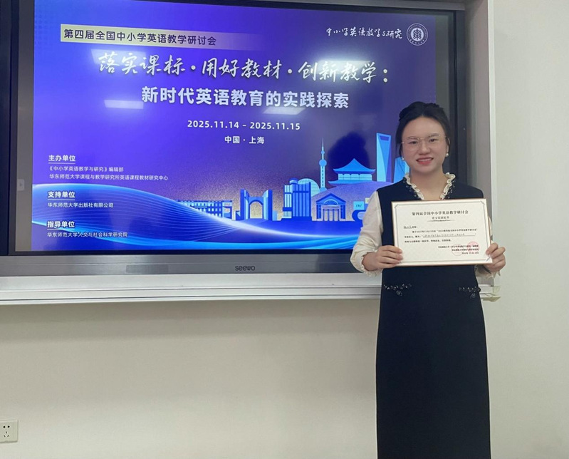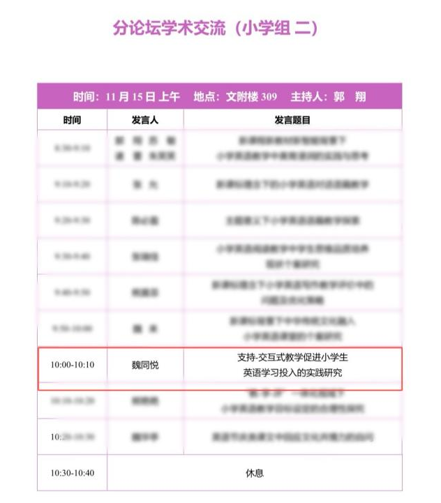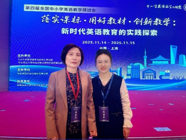 我校英语教师魏同悦撰写的相关研究成果经专家匿名评审通过,获邀在本次研讨会小学组分论坛中交流发言。此次参会,魏老师在英语教研组长马舒妍老师的陪同下,结合自身的教学实践展开分享,向同行呈现了我校在英语教学改革中的具体探索与实践思考。长期以来,我校始终以“支持每一个学生深度学习”为核心理念,并以“I课堂”为关键抓手,深耕各学科课堂教学创新改革。在学校理念的指引下,由周校长领衔的英语教研组开展了一系列扎实的教研攻关与课堂实践,不仅营造了浓厚的组内研究氛围,更积累了丰富的教学实践经验,为教师个人教研能力提升搭建了坚实平台。